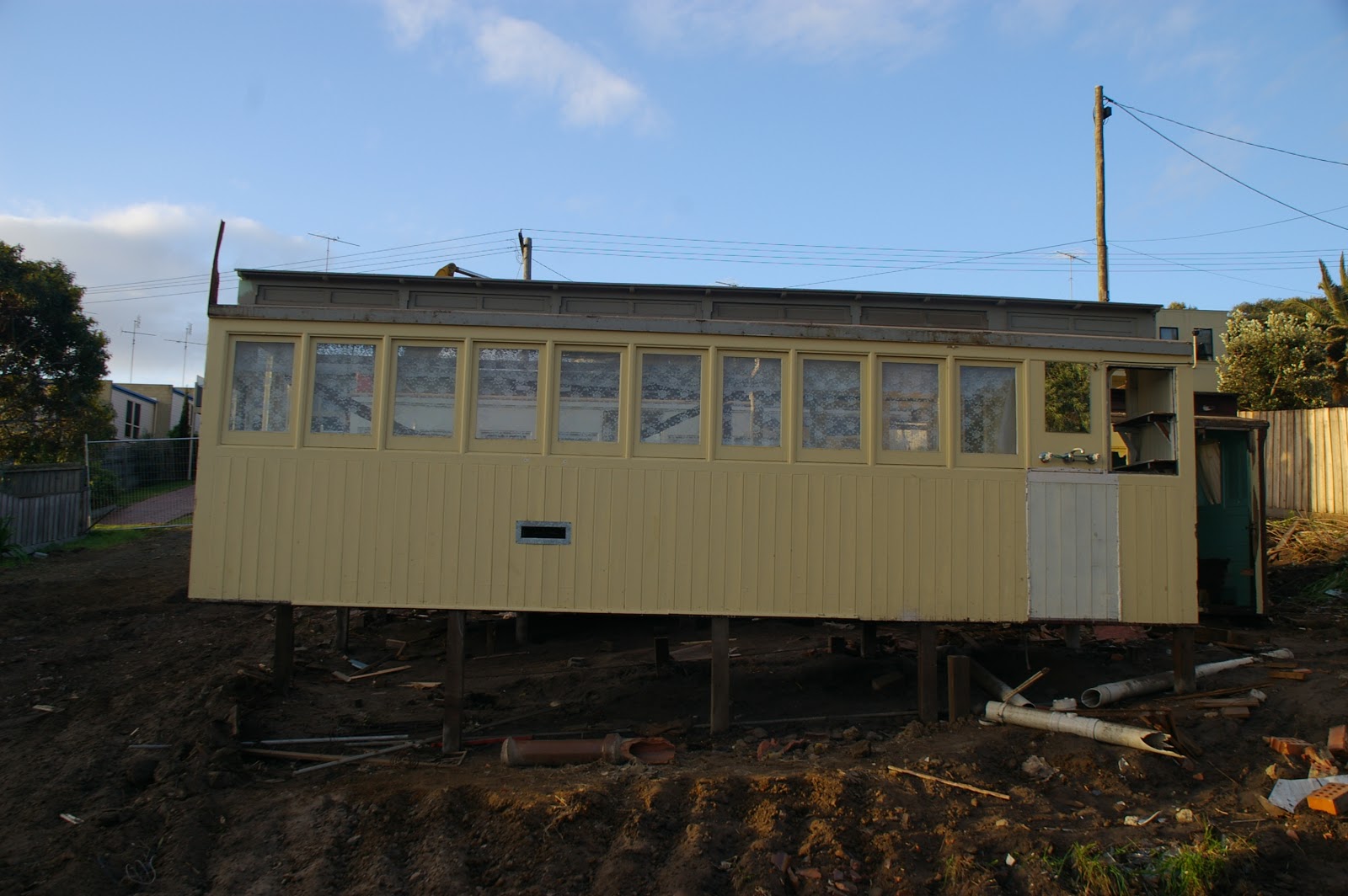 From what I can find out so far they came from Colac around 1936 and the house was built around and over the two coaches. The end platform NB is apparently no 6 but it is unknown what the swing door NB is. Puffing Billy have rescued these relics from the past and one day we will be able to ride in them.Cheers
